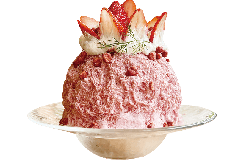 When I was a child, “shaved ice” was something we ate at summer festivals and often at home. We would shave with the ice made in the freezer with a shaved ice machine, which was available in every house in those days, and pour commercially available red-colored syrup over the ice. In the mid-summer afternoon, when the wind chimes hanging from the eaves of the houses were tinkling, the shaved ice that melted in my mouth was so cold that it cooled me down from the inside and made me feel comfortable. The shaved ice was also available at soba noodle restaurants. By the time I arrived home, about half of the shaved ice had melted, and I ate it while laughing with my family, saying, “It’s melted a lot.”