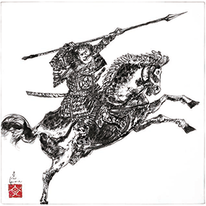 Depicted in these warrior paintings is KATO Kiyomasa, a military commander from the Azuchi-Momoyama period to the early Edo period (mid-16th to early 17th century). Kiyomasa is said to have been an extremely large man. His beloved horse was also of considerable size, and due to its wild nature, it was affectionately called “Taishakukurige” (God Taishaku chestnut hair). Currently, at Higo Honmyoji Temple in Kumamoto Prefecture, where Kiyomasa is enshrined, there is a hall dedicated to Taishakukurige, housing a wooden statue of a red horse.