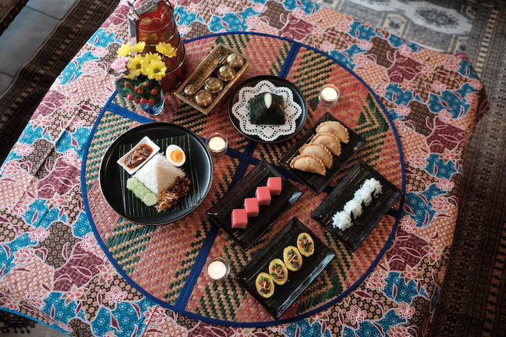 大使館の皆さんは取材陣を、ココナッツミルクで炊いたご飯に、アンチョビのフライとキュウリ、薬味を添え、特製サンバルソース(チリペースト)を混ぜて食べる「ナシレマ」、「サテ(マレー風串焼き)」、米粉から作るカラフルな伝統菓子「クエラピス」など、多彩なマレーシア料理でもてなしてくれました。