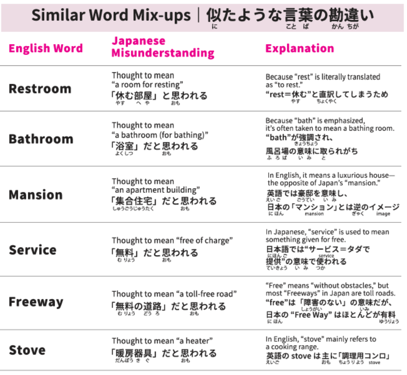 日本では「トイレ」という言葉が一般的で、「restroom=トイレ」と知る人は少ないのです。