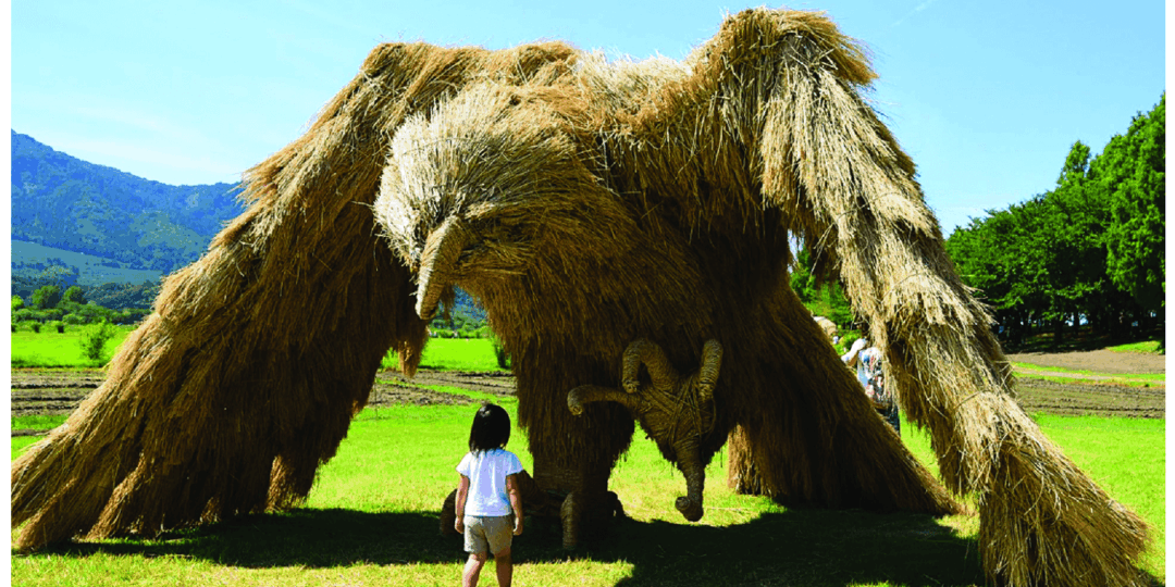 Here, after the rice harvest, art sculptures are made from ‘wara’ (rice straw) collected from the surrounding rice fields.