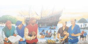 That year, a Dutch ship called De Liefde drifted ashore on the coast of Ōita Prefecture. This ship was one of five vessels that had set out from the Netherlands in 1598, aiming for East Asia. At the time, the Netherlands was competing with Portugal and Spain to establish trade routes with Asia, and De Liefde’s voyage was part of that effort.